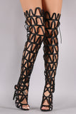 Thigh High Caged Back Lace Gladiator Stiletto Heels