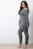 This plus size jumpsuit features a cuff down bardot neckline, long sleeves, stretchy sculpture fit, and taper cut legs. Accessories sold separately. Made in U.S.A. 65% Polyester, 35% Rayon.