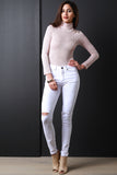 • Ribbed Knit Button Shoulder Bodysuit