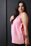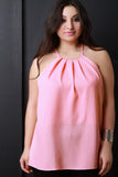 This charming plus size tank features a high neck with deep pleats at front, sleeveless design, flare silhouette, and back keyhole with button-loop closure. Accessories sold separately. Made in U.S.A. 100% Polyester.