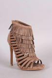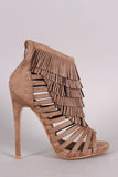 This striking fringe detail, and wrapped stiletto heel. Finished with lightly padded insole and rear zipper closure for easy on/off.