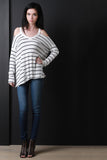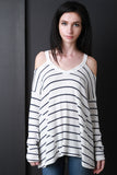 V-Neck Open Shoulder Stripe Top