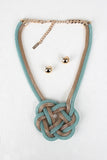 This statement necklace features mesh chains, knotted design, and adjustable lobster hook closure. Finished with matching earrings.