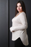 This plus size top features a ribbed knit fabrication with a high low hemline, round neckline and finished with long sleeves. Accessories sold separately. Made in US.A. 95% Rayon, 5% Spandex.