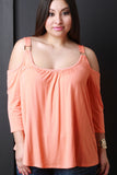 Quarter Sleeves Metal Hardware Cold Shoulder Top