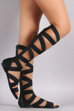 Liliana Elasticized Crisscross Straps Gladiator Flat Sandal