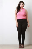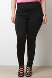 These plus size pants feature jersey knit fabric, wide elastic waistband, front seam and finished with taper cut legs. Accessories sold separately. 87% Polyester, 10% Rayon, 3% Spandex.
