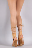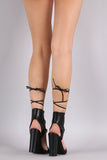 Open Toe Lace Up Ankle Cuff Chunky Heel