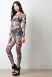 Keyhole Back Tribal Print Semi-Sheer Jumpsuit