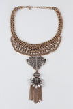Tribal Rhinestone Chain Fringe Statement Necklace