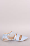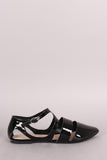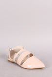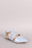 Qupid Patent Cutout Pointy Toe Ankle Strap Flat