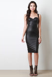 This vegan leather dress features a sweetheart neckline, soft padded cups, and sleeveless construction. Finished with back cutout designs and a zipper fastener. Accessories sold separately. Made in U.S.A. 100% Polyester.