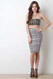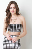 This tube top features a grid print design, hidden elasticized neckline and crop hemline. Accessories sold separately. Made in U.S.A. 95% Polyester, 5% Spandex.