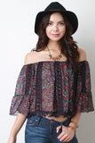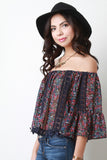 Off The Shoulder Floral Crochet Tassel Top