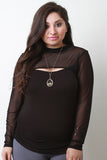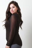 Mesh Contrast Cutout Long Sleeve Ruched Top