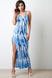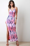 Tie Dye Open Cross Back Deep Slit Maxi Dress