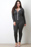 Plus Size Contrast Zip Up Hoodie Jumpsuit