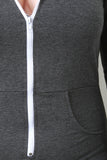 • Plus Size Contrast Zip Up Hoodie Jumpsuit