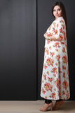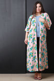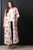 This kimono features a lightweight semi-sheer fabrication, floral print design, wide three quarter sleeves, and maxi length hemline. Accessories sold separately. Made in U.S.A. 100% Polyester.
