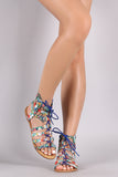 Qupid Floral Strappy Lace-Up Gladiator Flat Sandal