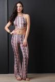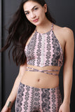 This on-trend crop top features African print soft knit, halter neckline, and self-tie lace design. Accessories sold separately. Made in U.S.A. 95% Rayon, 5% Spandex.