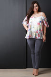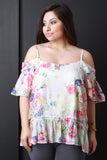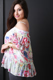 Floral Pirnt Cold Shoulder Ruffle Hem Top
