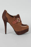 Pair these trendy platform booties with a sassy outfit for a classy fall look! Featuring round toe front, stitching detail, adjustable buckle strap accent, contrast trim, stacked platform and wrapped heel. Finished with cushioned insole for your comfort.