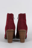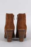 These booties have a Western silhouette, featuring stitching details and a stacked heel. Finished with a side zipper for easy on-off wear.