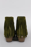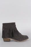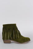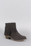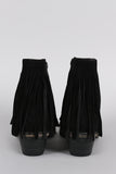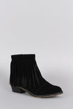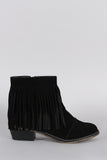 These cowgirl fringe detail at collar, stitching accents, and low stacked heel. Finished cushioned insole and soft interior lining for all day comfort. Side zipper closure for easy on/off.