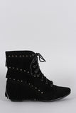 These chic fringe detail, studded accents, round toe, and hidden wedge heel. Finished with cushioned insole, soft interior lining, and lace up closure.