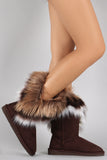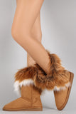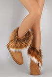 These warm faux fur collar design, round toe silhouette, and low flat heel. Finished with cushioned insole, soft faux fur interior lining, and easy pull on style.