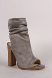 These chic booties features a slouchy shaft with cutout design back and squared open toe silhouette. Finished with a lightly cushioned insole, chunky stacked heel, and side zipper closure for easy on/off.