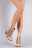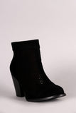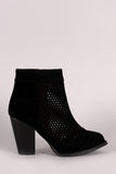 These fashionable booties feature a perforated vegan suede upper, round toe silhouette, and chunky stacked heel. Finished with cushioned insole and convenient side-zip closure.
