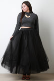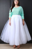 A maxi skirt featuring a wide elastic waistband, voluminous layers of tulle, and smooth interior lining. Accessories sold separately. Self: 100% Polyester. Lining: 95% Polyester, 5% Spandex.