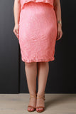 This pencil skirt features a semi-sheer floral lace overlay fabrication with a solid underlay, and elasticized waistband. Accessories sold separately. Made in U.S.A. 92% Polyester, 8% Spandex.
