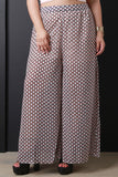 This plus size pants features a geometric print chiffon fabrication, elasticized waist band, and airy wide legs design. Partially lined. Accessories sold separately. 100% Polyester.