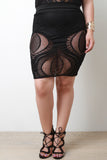 This plus size mini skirt features oval pattern semi-sheer lace fabrication, wide elasticized waist, rear exposed zipper fastener, and brief underlay. Accessories sold separately. Made in U.S.A. 97% Nylon, 3% Spandex.