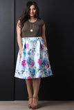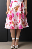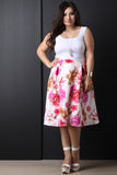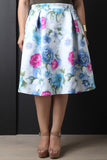 This plus size skirt features smooth stretch knit, floral print, pleated design, and a-line cut. Accessories sold separately. Made in U.S.A.