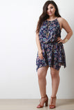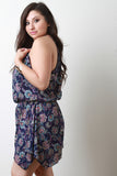 This plus size romper features a light weight woven fabrication, paisley style floral print, self tie spaghetti straps, key hole back, elastic waist, flowey loose handkerchief hem short bottom. Accessories sold separately. Made in U.S.A. 100% Rayon.