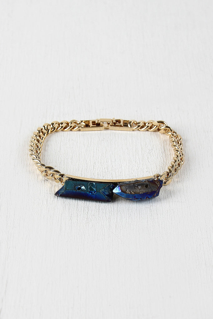 This stones on a glossy metallic bar, flat curb link chain, and a snap latch clasp.