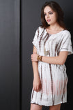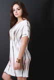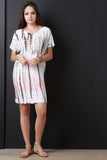 This casual dress features soft waffle knit, tie dye design, round neckline, short sleeves, and relaxed fit. Accessories sold separately. Made in U.S.A. 95% Rayon, 5% Spandex.