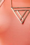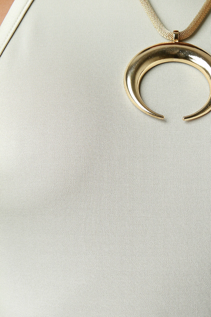 This chic jumpsuit features a backless design, high neckline, shoulder and neck spaghetti straps, knit fabrication, finished with a taper cut leg. Accessories sold separately. Made in U.S.A. 95% Polyester, 5% Spandex.