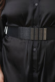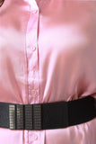 This plus size dress features faux satin fabrication, classic shirt collar, and a button-up front with a detachable belt. Finished with long sleeves with single button cuffs and a slit in the front of dress. Accessories sold separately. 100% Polyester.