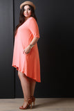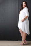 This plus size dress features soft jersey knit, round neckline, quarter length sleeves, relaxed fit, and finished with high-low hemline. Accessories sold separately. Made in U.S.A. 96% Polyester, 4% Spandex.