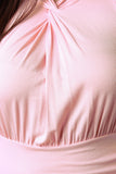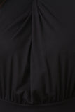 This plus size dress features a twisted mock neckline, sleeveless design, decorative ruched detail, stretchy sculpture fit, exposed back-zip closure, and asymmetrical tulip hemline. Accessories sold separately. 96% Rayon. 4% Spandex.
