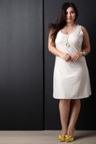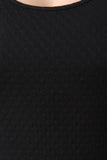 This plus size dress features a textured pattern knit fabrication, scoop neckline, sleevless fit, and finished with a midi-length hemline. Accessories sold separately. Made in U.S.A. 95% Polyester, 5% Spandex.