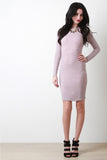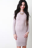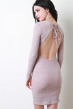 This marled knit backless design with lace up closure, round neckline, long sleeves construction, and stretchy bodycon fit. Partially lined. Accessories sold separately. Made in U.S.A. Self: 97% Polyester, 3% Spandex. Lining: 95% Rayon, 5% Spandex.