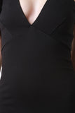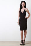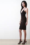 This stunning midi dress features a v-neckline, spaghetti shoulder strap with back crisscross design, sleeveless, and lightly padded bust. Finished with stretchy bodycon fit and small slit in back of dress. Accessories sold separately. Made in U.S.A. 95% Polyester, 5% Spandex.