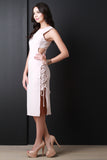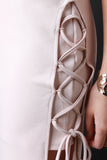 This simply chic dress features a seamless round neckline, sleeveless, side keyhole cutout, lace-up design at hip, hidden zipper fastener and fully lined. Accessories sold separately. 95% Cotton, 5% Spandex.