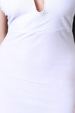 This midi dress features a u-neckline, sleeveless construction with spaghetti shoulder straps, and bodycon fit. Finished with an open back and gathered material . Accessories sold separately. Made in U.S.A. 96% Polyester, 4% Spandex.